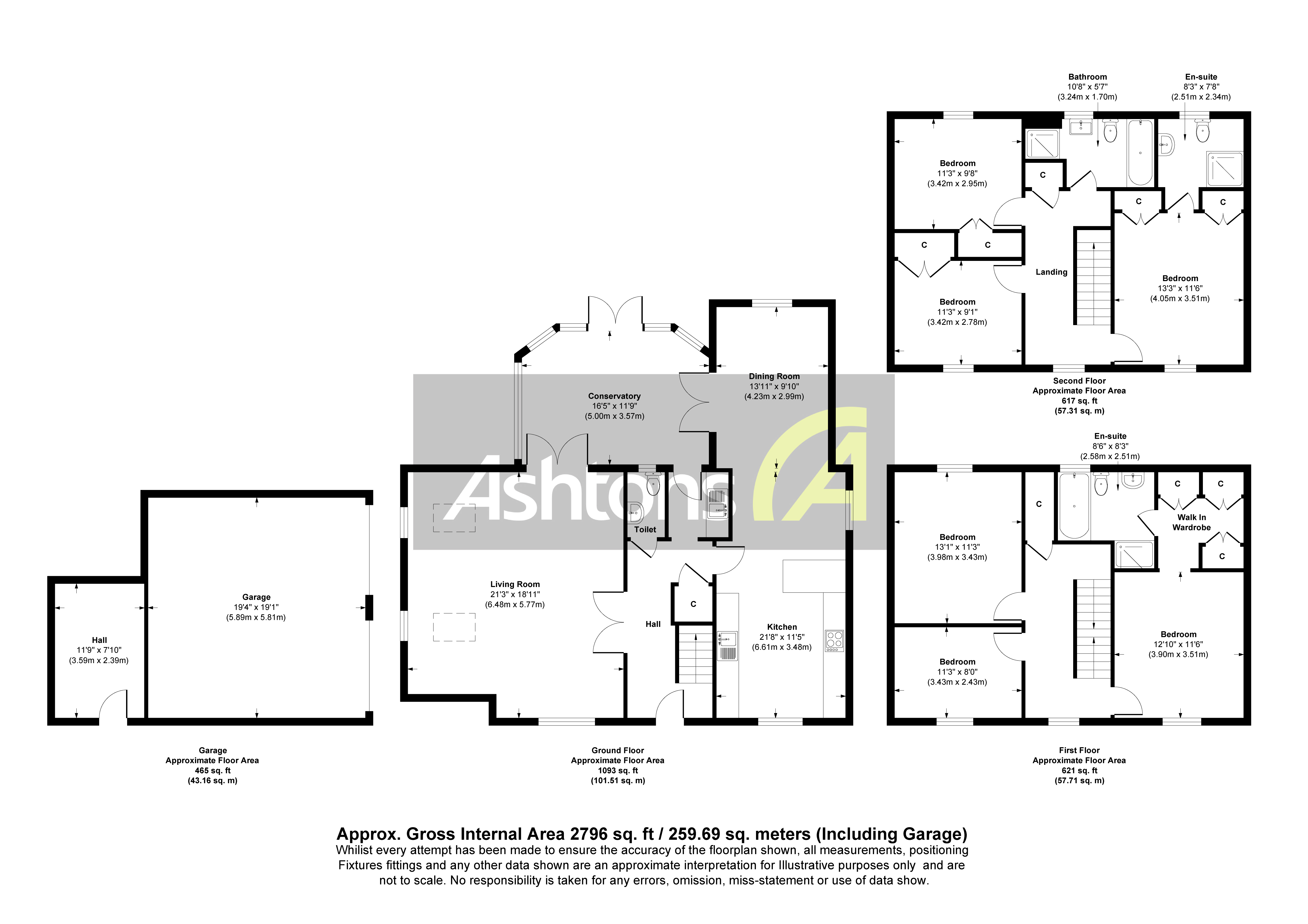 The first floor boasts a well-appointed master bedroom with fitted wardrobes and en-suite shower room, alongside two further bedrooms and a family bathroom. The top floor provides two generous double bedrooms, both with fitted wardrobes, served by a recently fitted Jack & Jill bathroom, perfect for family or guests.